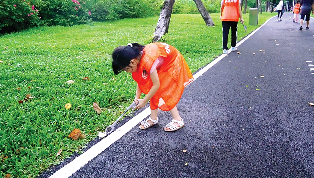 惠報(bào)小記者在東江公園公益撿跑。