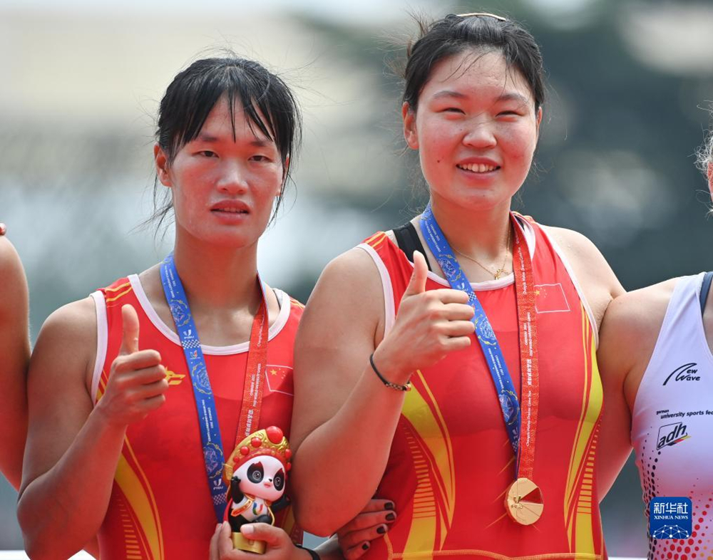船槳齊動(dòng),劈波斬浪。8月6日,在成都舉行的第31屆世界大學(xué)生夏季運(yùn)動(dòng)會(huì)賽艇項(xiàng)目女子雙人單槳決賽中,中國(guó)組合周羽秀、張佩歆以7分31秒86的成績(jī)獲得冠軍,為中國(guó)隊(duì)拿到本次大運(yùn)會(huì)賽艇項(xiàng)目首金。