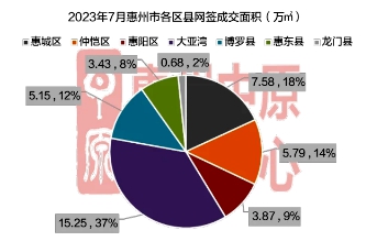 7月惠州各區(qū)縣新房住宅成交占比情況。