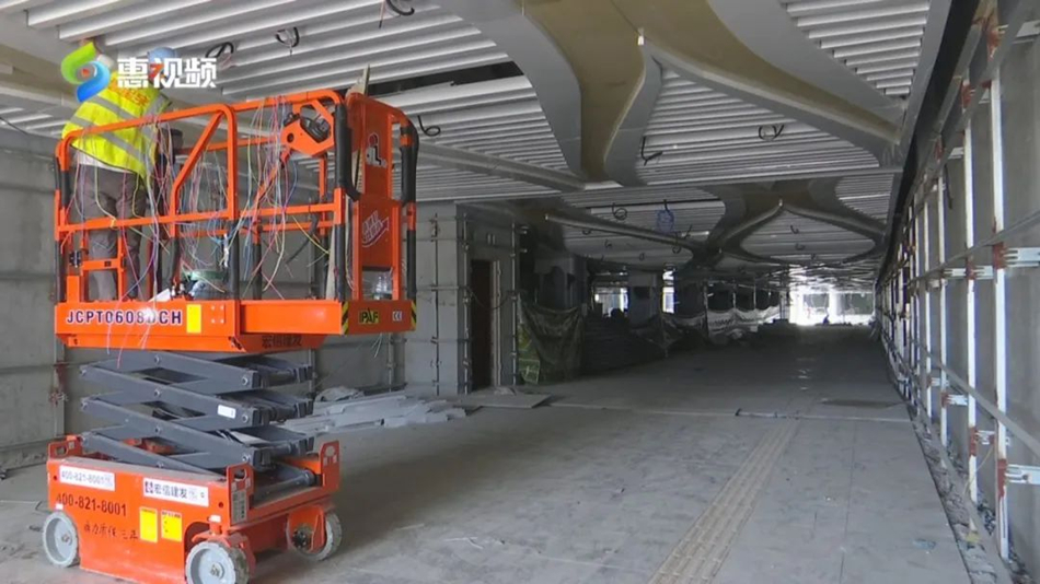 廣汕高鐵惠州南站綜合交通樞紐配套項目位于惠城區(qū)三棟鎮(zhèn),總用地面積約113公頃,于2022年7月動工建設(shè),計劃2023年9月與廣汕鐵路同步建成投產(chǎn)。記者在候車大廳施工現(xiàn)場看到,大廳的頂棚和玻璃幕墻已經(jīng)全部安裝到位,地面大理石鋪裝也接近尾聲;葜菔谐峭都瘓F(tuán)方面介紹,為了搶抓施工期,工地上各施工環(huán)節(jié)根據(jù)項目的特點和施工環(huán)境,錯峰施工,避開高溫作業(yè)。