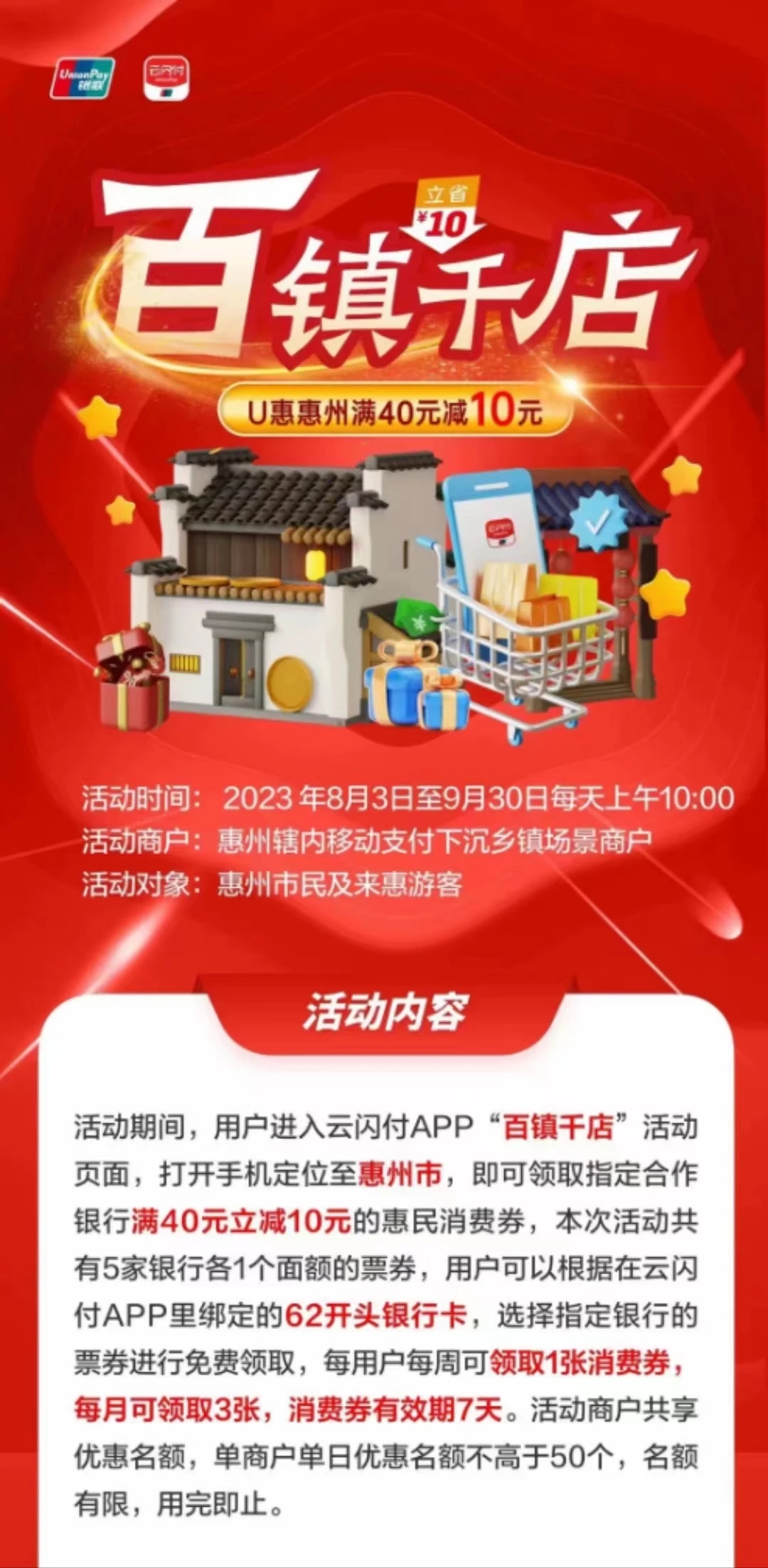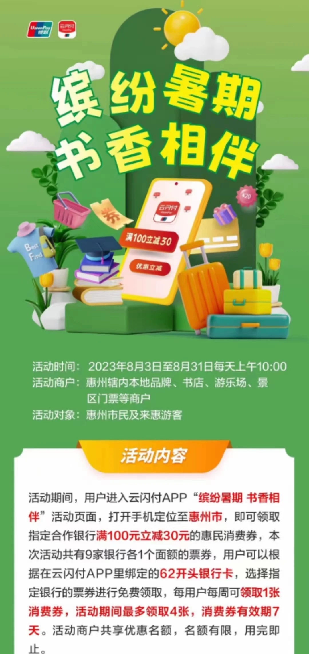 @惠州人 150萬元消費(fèi)券已發(fā)放,“百鎮(zhèn)千店”和“繽紛暑期 書香相伴”兩大消費(fèi)主題場景可用