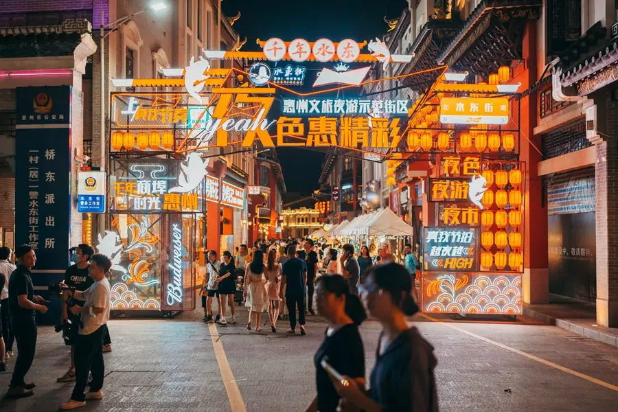 集市、音樂節(jié)、時裝秀、吃貨節(jié)、親子游園會……隨著夜幕降臨,惠州各大商圈的“夜生活節(jié)目”火熱上演,時值暑假更有滿滿的購物優(yōu)惠。與此同時,核心商圈輻射而成的商圈“新市場”活力四射,市民群眾紛紛走出家門、到店消費,流光溢彩間,借由商圈釋放出消費新活力,進一步點亮城市夜經濟。