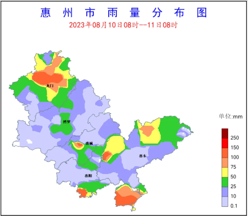 8月10日08時(shí)-11日08時(shí)惠州市雨量