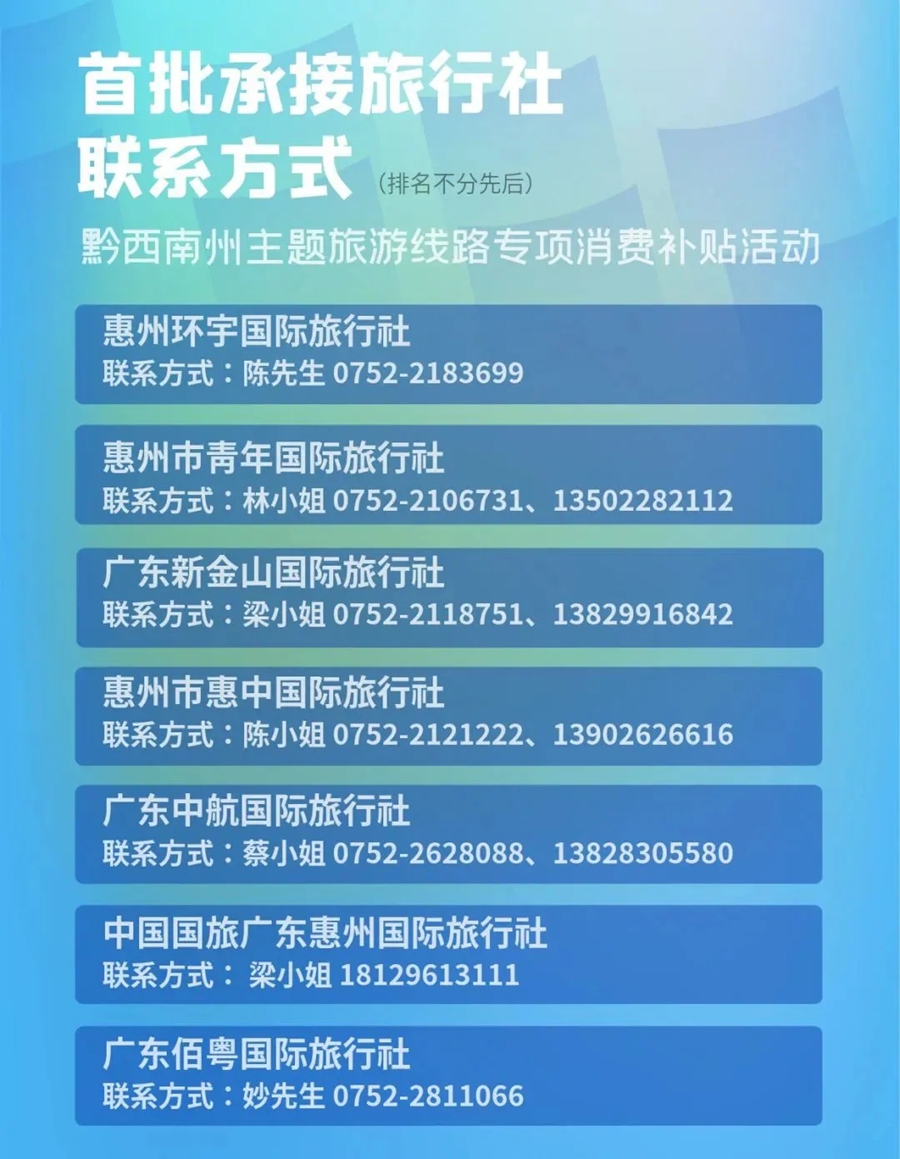 惠州開(kāi)展黔西南州主題旅游路線專項(xiàng)消費(fèi)補(bǔ)貼活動(dòng)