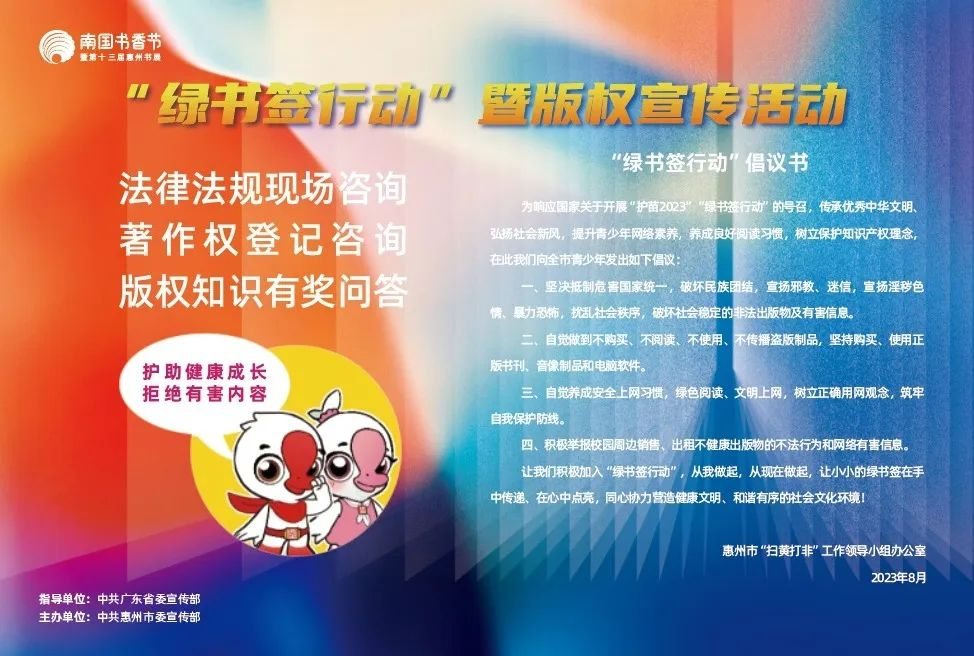 本屆書(shū)展由中共廣東省委宣傳部指導(dǎo)、中共惠州市委宣傳部主辦,以“書(shū)香嶺南三十載 賡續(xù)文脈新征程”為口號(hào),采取線上線下結(jié)合、全市各級(jí)聯(lián)動(dòng)、分散同期辦展的形式進(jìn)行,將有近百場(chǎng)活動(dòng)在書(shū)展中呈現(xiàn)。