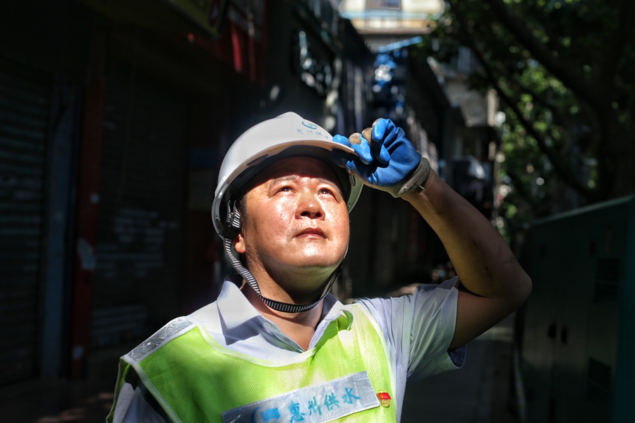 烈日當(dāng)空,驕陽似火,供水人奔走在城市供水管道每一個(gè)運(yùn)輸點(diǎn),汗水滑落臉龐,浸濕身上衣裳。各營業(yè)網(wǎng)點(diǎn)管網(wǎng)巡查員穿街走巷,重點(diǎn)巡查供水管網(wǎng)及附屬設(shè)施維護(hù)及查漏,發(fā)現(xiàn)供水管道滲漏、破裂等情況發(fā)生,及時(shí)反饋至供水維修隊(duì)。在用水高峰期,市供水有限公司搶修隊(duì)員24小時(shí)待命,接到反饋第一時(shí)間到現(xiàn)場處理。各水廠維修員徘徊在“桑拿房”內(nèi),重點(diǎn)檢查水廠機(jī)組、設(shè)備運(yùn)行指標(biāo)情況,發(fā)現(xiàn)隱患苗頭,現(xiàn)場維修排除故障。