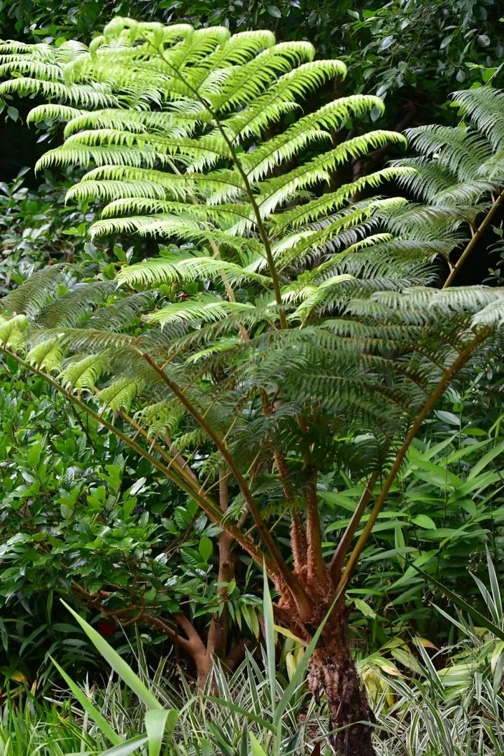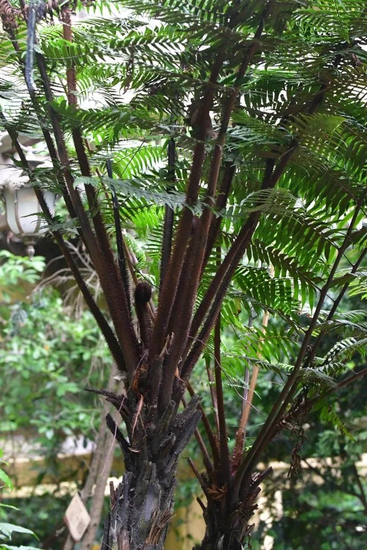 在惠州植物園陰生園里,有多株“與恐龍同時代”樹,它們就是黑桫欏和筆筒樹,都屬于國家二級保護(hù)野生植物。早在數(shù)億年前的侏羅紀(jì),蕨類植物就在這顆星球上盤根錯節(jié),稱霸整個植物界,而黑桫欏和筆筒樹都屬于桫欏科樹狀植物,起源于約3億6000年前的中生代侏羅紀(jì),是當(dāng)時恐龍的主要食糧,被人們稱為植物界的“活化石”。惠州植物園通過遷地保護(hù),在陰生園內(nèi)種了7株黑桫欏和2株筆筒樹,讓這些珍稀瀕危植物重返人們視野。