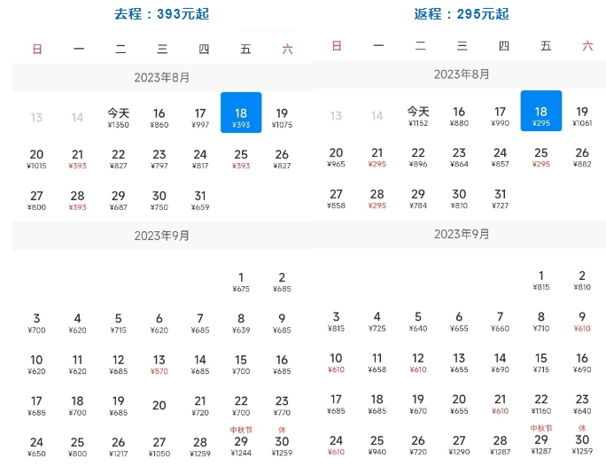 注:下述截圖時(shí)間基本在8月15日下午15:20前后,數(shù)據(jù)均來(lái)自攜程,因機(jī)票變動(dòng)較快,大家購(gòu)票請(qǐng)以實(shí)際為準(zhǔn)!