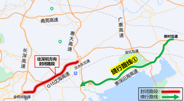 交通組織調(diào)整:施工期間,G15沈海高速公路淡水東互通往深圳方向主線封閉,禁止車輛通行;沙田收費站和淡水收費站往深圳方向的入口匝道封閉,禁止車輛通行。
