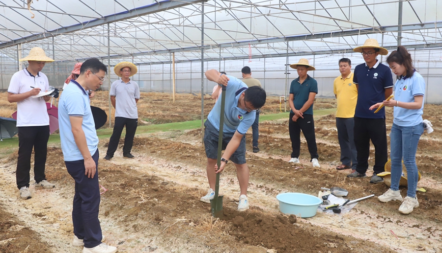 “采樣工作應(yīng)嚴(yán)格按照規(guī)范進(jìn)行,取樣時(shí),要注意避讓壟溝和施肥坑!痹谝惶幏N植大棚內(nèi),廣東省科學(xué)院生態(tài)環(huán)境與土壤研究所有關(guān)負(fù)責(zé)人還向大家進(jìn)行了采樣作業(yè)的實(shí)操演示,并與現(xiàn)場人員進(jìn)行交流、互動(dòng)。