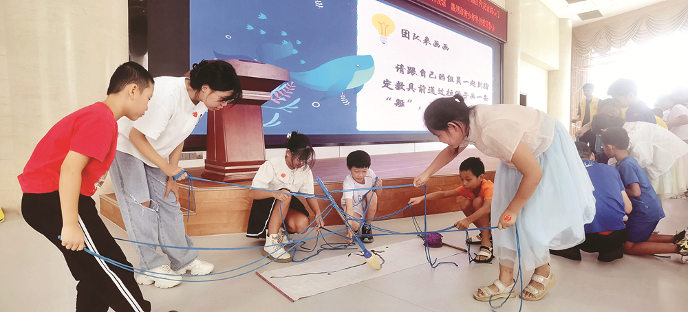 記者現(xiàn)場(chǎng)看到,每組學(xué)員一起拿起教具,通過(guò)拉繩子畫(huà)“船”來(lái)提高團(tuán)隊(duì)合作能力,受到大家的歡迎。“這樣的活動(dòng)很有意思,大家進(jìn)行互動(dòng),增進(jìn)了感情。”學(xué)員小余說(shuō),活動(dòng)中,大家需要不斷交流并形成合力,才能高效地完成任務(wù)。