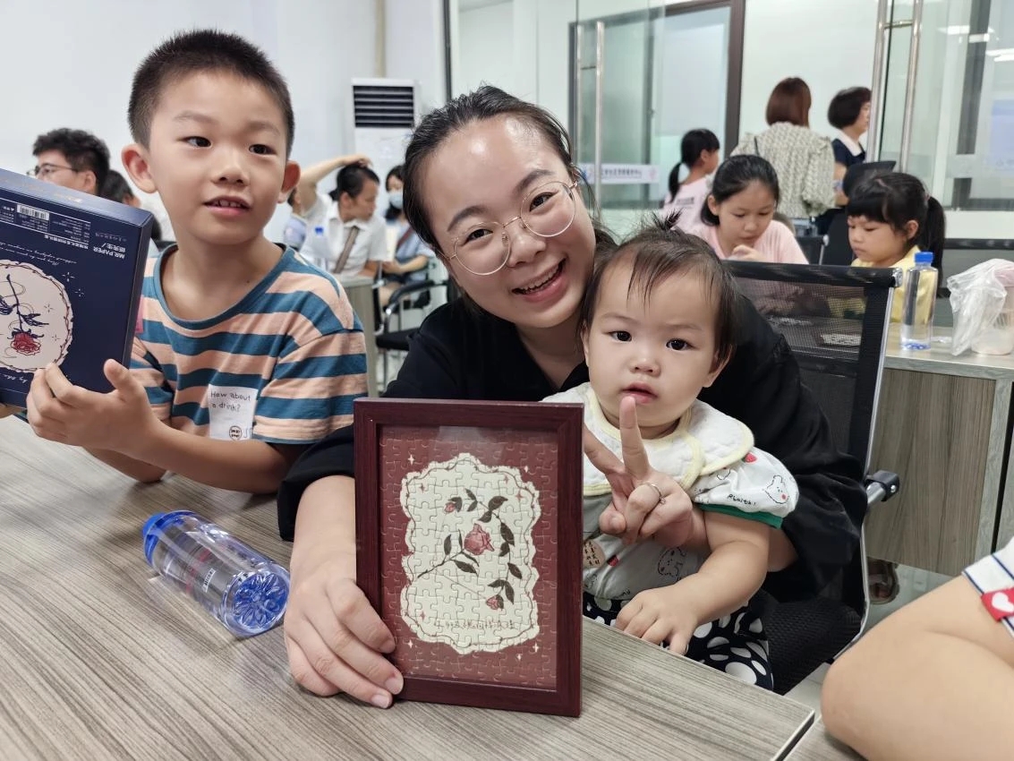 現(xiàn)場(chǎng)還設(shè)置了親子合作玫瑰拼圖環(huán)節(jié)。在工作人員耐心講解拼圖步驟和要點(diǎn)后,家長(zhǎng)和孩子們按照?qǐng)D紙一點(diǎn)一點(diǎn)將拼圖拼接起來,一幅幅永不凋謝的“玫瑰花”呈現(xiàn)在大家眼前。在親子共同參與合作的過程中,孩子們動(dòng)手動(dòng)腦的能力得到了培養(yǎng),家長(zhǎng)們也在這次活動(dòng)中感受到了童心,悅享了一段其樂融融的親子時(shí)光。