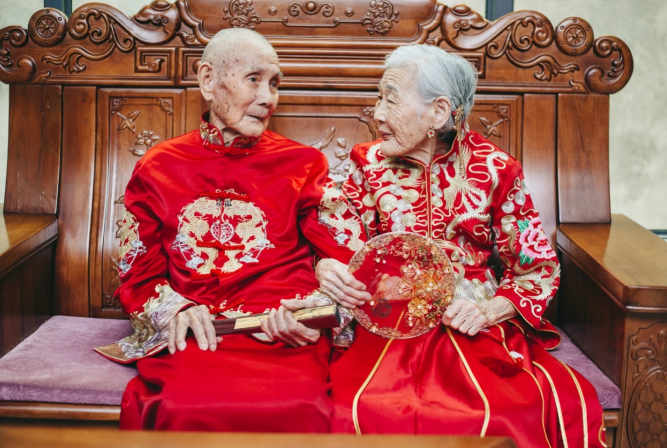 為抗美援朝老兵楊懂德夫妻拍攝金婚婚紗相片。