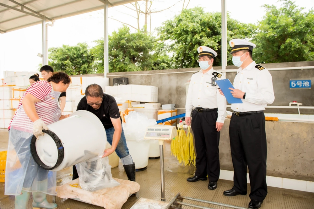 惠州海關(guān)關(guān)員對(duì)擬出口活鰻開(kāi)展現(xiàn)場(chǎng)監(jiān)管作業(yè)。