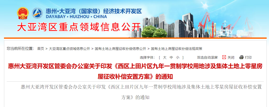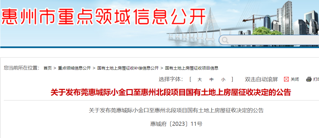 惠州部分地方房屋征收信息
