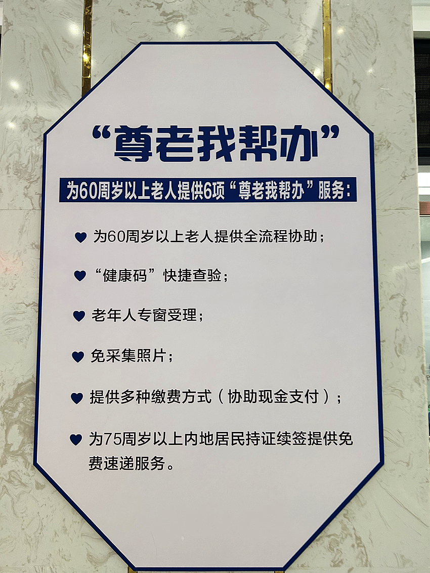 1、為60周歲以上老人提供免預(yù)約和專窗服務(wù)。