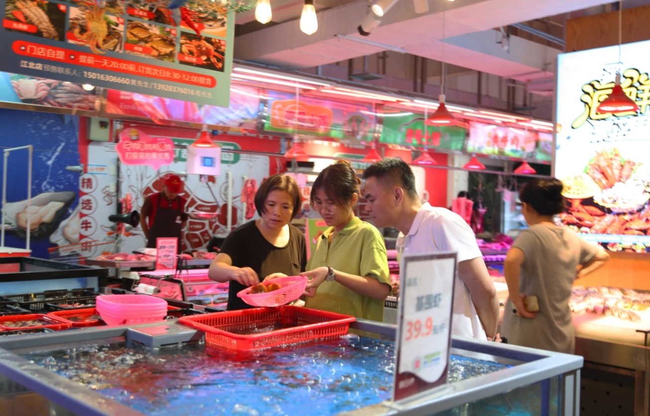 市民在麗日購物廣場江北店選購海鮮。