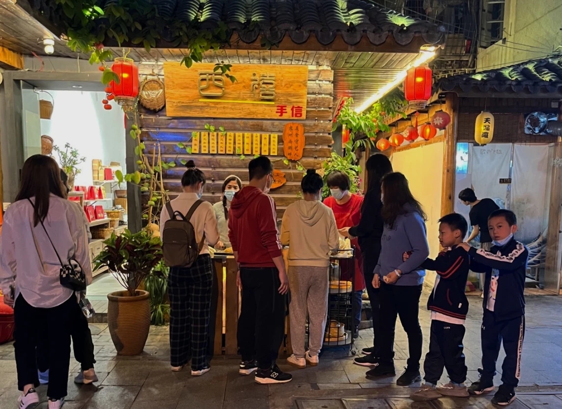 隨著祝屋巷文旅街區(qū)逐漸興旺,陳小麗的烘焙店紅火起來(lái),成為一家網(wǎng)紅店,顧客在品嘗、購(gòu)買(mǎi)產(chǎn)品的同時(shí),不忘與熱情的陳小麗合影留念。
