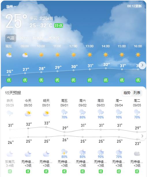 預計8月30日至31日,我市各地以多云到晴天為主,局部有雷陣雨;