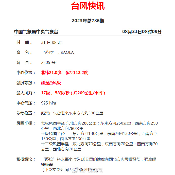 【“蘇拉”將于1日下午到夜間上岸】今晨8時(shí),超強(qiáng)臺(tái)風(fēng)“蘇拉”繼續(xù)維持在17級(jí),