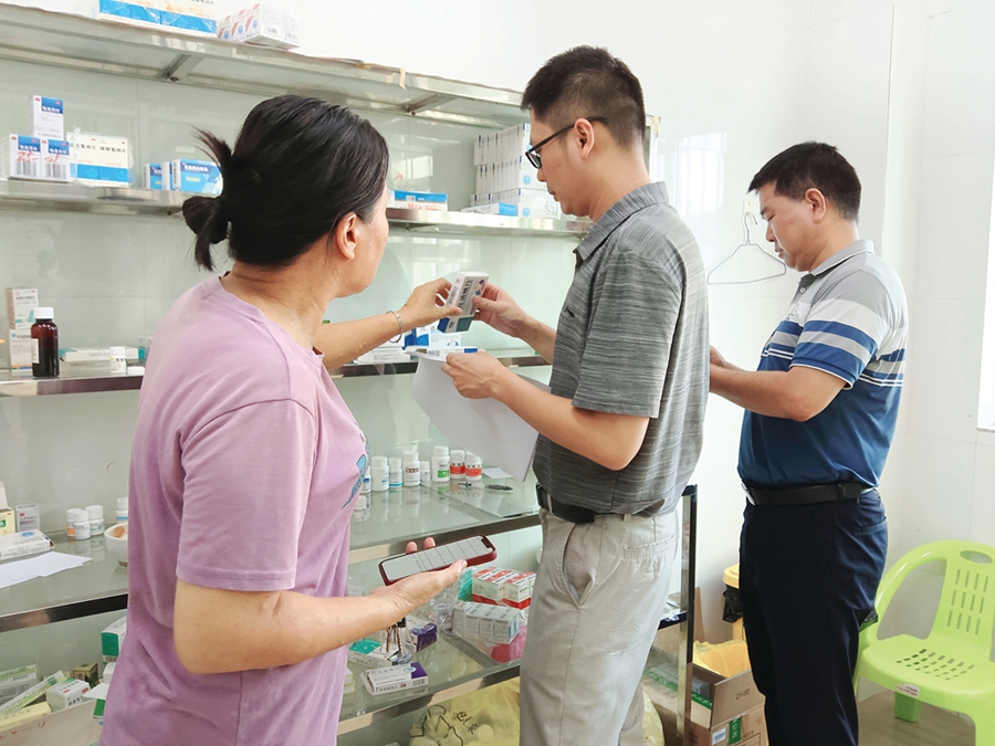 惠州紀(jì)檢監(jiān)察工作人員現(xiàn)場檢查街道衛(wèi)生站建設(shè)及運行、藥品質(zhì)量是否有保障等工作。