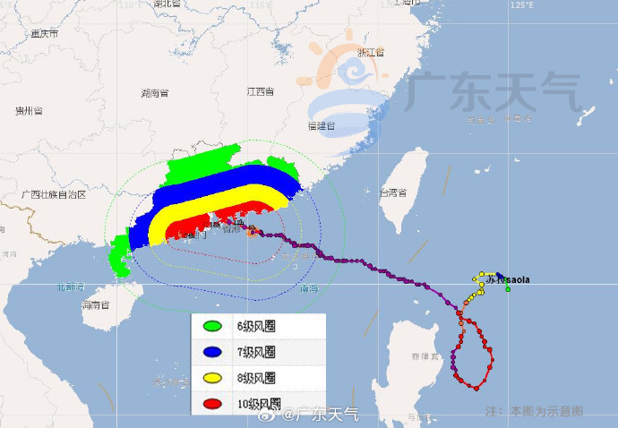 預計,“蘇拉”將以每小時10-15公里的速度向西偏北轉偏西方向移動,強度緩慢減弱,將于9月2日凌晨到上午登陸或擦過廣東臺山到深圳一帶沿海(強臺風級,42-50米/秒,14-15級),然后向西偏南方向移動。