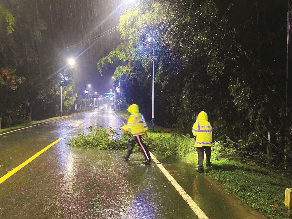 臺風(fēng)遠(yuǎn)離后,惠東交警連夜冒雨上路巡邏并清理交通安全隱患。