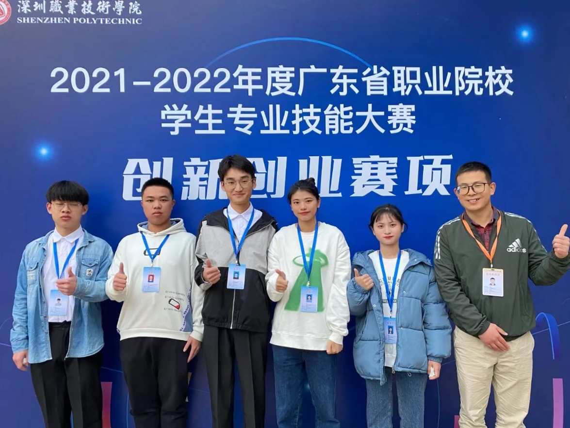 李政良(左二)與其團(tuán)隊(duì)參加“廣東省職業(yè)院校學(xué)生專業(yè)技能大賽”