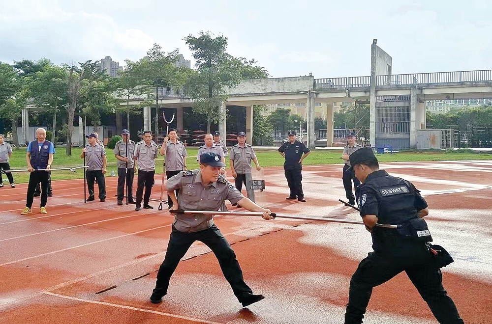 培訓(xùn)期間,培訓(xùn)教官對(duì)各類安保防暴器械使用方法進(jìn)行了詳細(xì)講解示范,切實(shí)提高了校園安保人員應(yīng)對(duì)處置能力和自我保護(hù)能力,筑牢校園安全防線,為秋季開學(xué)營(yíng)造了安全穩(wěn)定的環(huán)境。