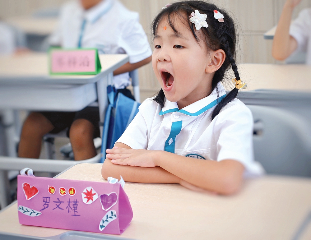在博羅縣羅陽第四小學,一大早,教室里就書聲瑯瑯。度過一個暑假的孩子們回到學校,表現各異,有的孩子還沒適應開學的作息時間,有的還帶著來不及吃的早餐走進教室,一些低年級的孩子則哭鬧著不讓父母離開,也有的孩子與朋友們重逢,玩得不亦樂乎。