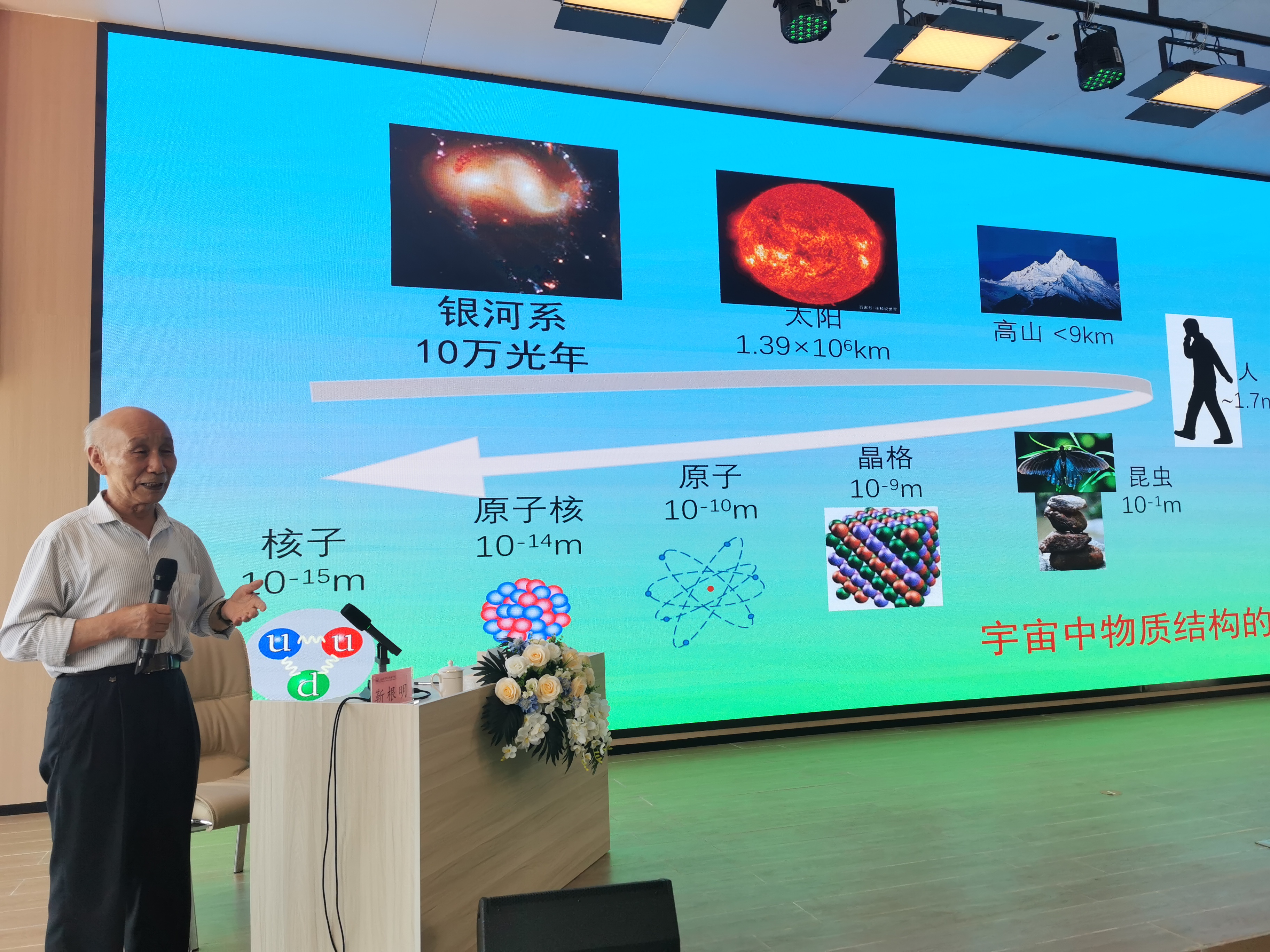 9月4日,今年新建的惠州學(xué)院附屬學(xué)校邀請了中國科學(xué)院近代物理研究所原副所長、研究員、博士生導(dǎo)師靳根明為七年級學(xué)生上科學(xué)課。課堂上,靳根明介紹了位于學(xué)校旁邊的中國科學(xué)院近代物理研究所惠州研究部,以及中國科學(xué)院在惠州建設(shè)的加速器驅(qū)動嬗變研究裝置(CiADS)與強流重離子加速器裝置(HIAF)兩大“國之重器”。通過一個個有趣的問題引入,用生活中的案例和深入淺出的講解,為同學(xué)們科普原子核的相關(guān)知識,給大家介紹為什么要研究原子核,它有什么作用等。在互動環(huán)節(jié),同學(xué)們踴躍舉手提問,靳根明一一耐心回答。