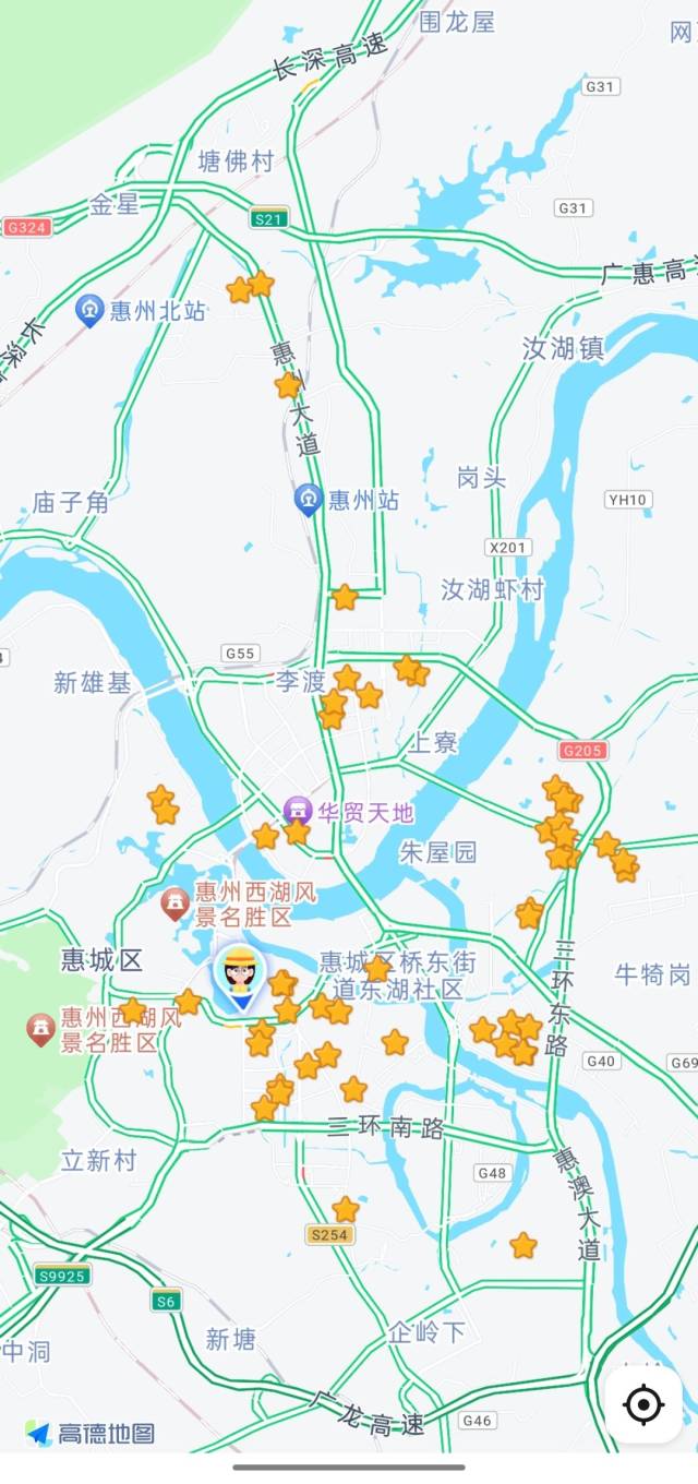 惠州街頭到底有多少這種店呢?以惠城區(qū)為例,在高德地圖上以“零食”為關(guān)鍵詞搜索,便可看到這些量販零食店的布局。