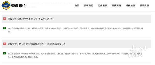 “零食很忙”官網(wǎng)則顯示,其日正常營(yíng)業(yè)額10000-15000元左右,加盟商店的綜合毛利約18%左右,從開(kāi)業(yè)到完全打開(kāi)市場(chǎng)都需要6-12個(gè)月新店培育期,大概需要一年半至兩年回本。