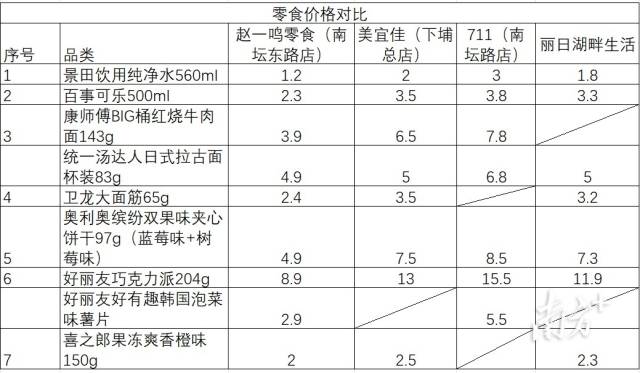 零食價(jià)格對(duì)比