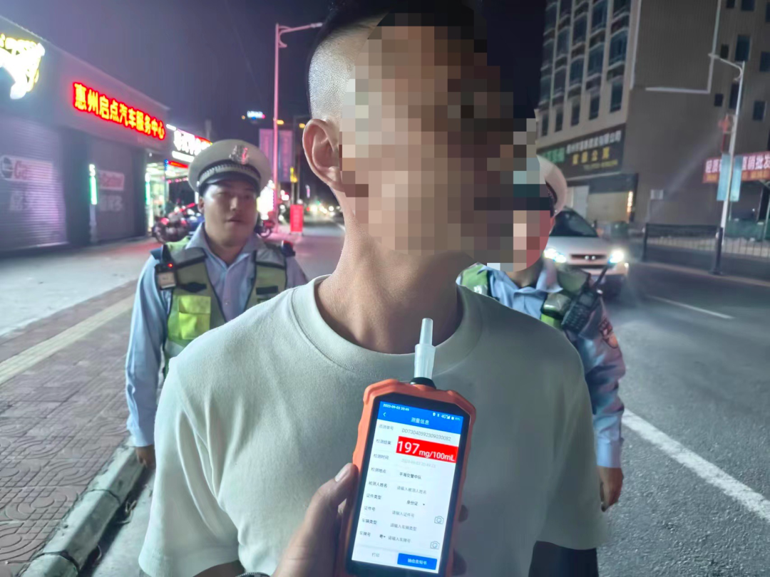 9月5日凌晨,惠東縣公安局交警大隊在平海萬德福酒店路段設卡檢查,當一輛白色小車的駕駛?cè)藢④嚧敖迪聛頃r,民警聞到了一股濃烈的酒氣。