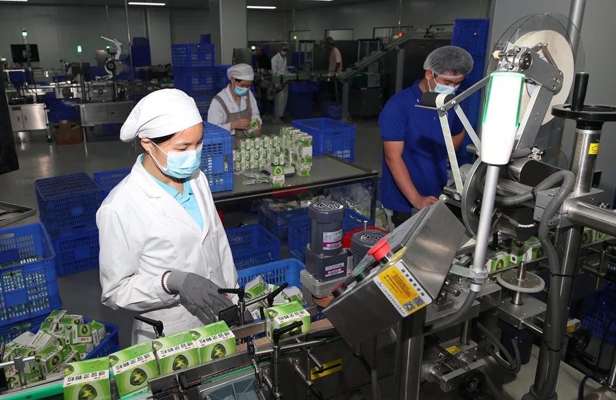 “噠、噠、噠……”新峰藥業(yè)生產(chǎn)車間內(nèi)一片繁忙,一包包感冒靈顆粒在生產(chǎn)線上被分裝、打包。在這條生產(chǎn)線上,大約10名工人一天就能分裝打包生產(chǎn)33.6萬(wàn)多盒感冒靈顆粒,相當(dāng)于月產(chǎn)約900萬(wàn)盒。