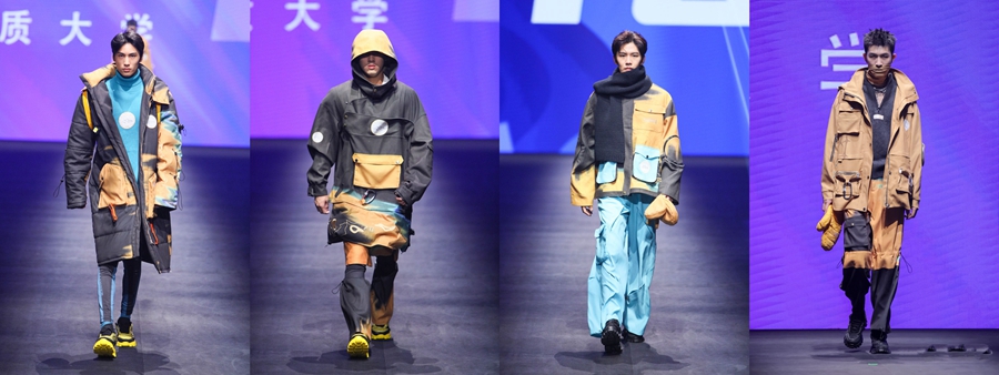 伴隨動(dòng)感的音樂(lè)節(jié)奏與炫酷的光影效果,活動(dòng)一經(jīng)開(kāi)幕瞬間燃炸全場(chǎng)!舞臺(tái)上,選手們一件件別出心裁的服裝設(shè)計(jì)贏得了在場(chǎng)觀眾、評(píng)委的認(rèn)可與贊嘆。經(jīng)過(guò)激烈角逐,其中來(lái)自中國(guó)地質(zhì)大學(xué)胡博洋的設(shè)計(jì)佳作《攀登者》獲得評(píng)委們的一致青睞,從上千份參賽作品中脫穎而出,最終摘得大賽金獎(jiǎng)!評(píng)審們表示,《攀登者》作品的時(shí)尚與創(chuàng)意兼具,不僅詮釋出主題“自定義”的重要內(nèi)涵,而且注重面料的使用,利用拆線、刺繡和色彩拼接的碰撞,將多種元素進(jìn)行解構(gòu)、組合,整體設(shè)計(jì)凸顯戶外服飾的功能性、防御性,傳遞出當(dāng)代青年對(duì)時(shí)代思潮與時(shí)尚趨勢(shì)的敏感度。