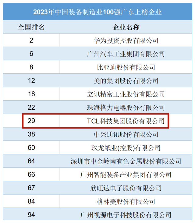 “100強(qiáng)榜單”中,惠州上榜的企業(yè)是TCL科技集團(tuán)股份有限公司,排名第29位。