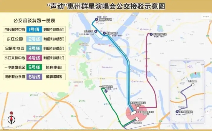 返程停靠站點:體育南路→演達大道→演達四路→惠遠路(惠港中學停車場)