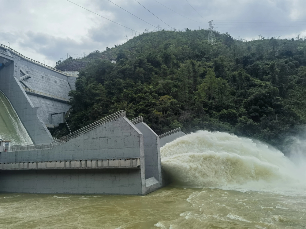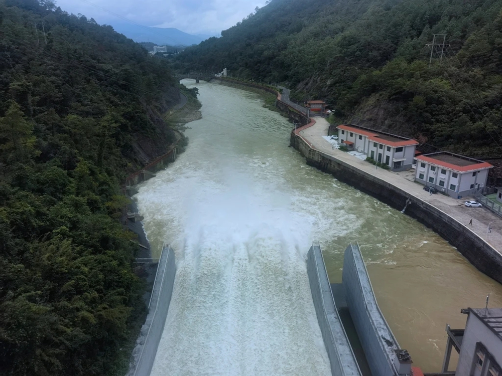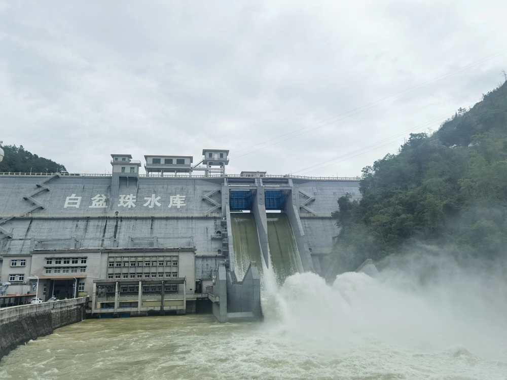 白盆珠水庫開閘泄洪現(xiàn)場。