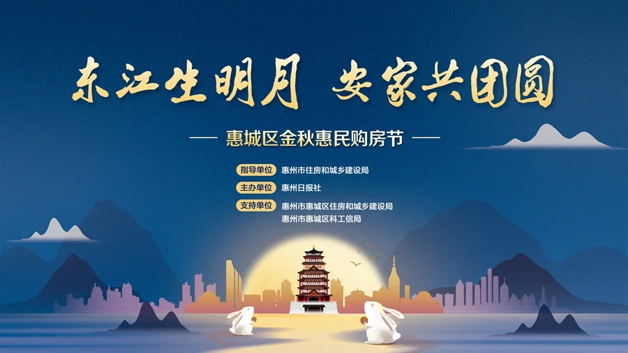 東江生明月,安家共團(tuán)圓!9月29日~10月1日,以“東江生明月 安家共團(tuán)圓”為主題的惠城區(qū)金秋惠民購房展銷活動(dòng)將在水東街街區(qū)江邊落地夜房展,于“花好月圓夜”營造“和諧、溫馨、幸福”的置業(yè)氛圍,為住房消費(fèi)者提供集中看房、選房、購房便利。