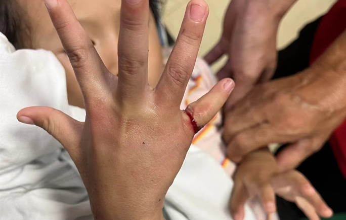 9月16日晚上,惠東吉隆消防救援站接到警情稱,一醫(yī)院急診科,一名小孩手指被鐵片卡住,導致手指發(fā)紫并伴有流血。