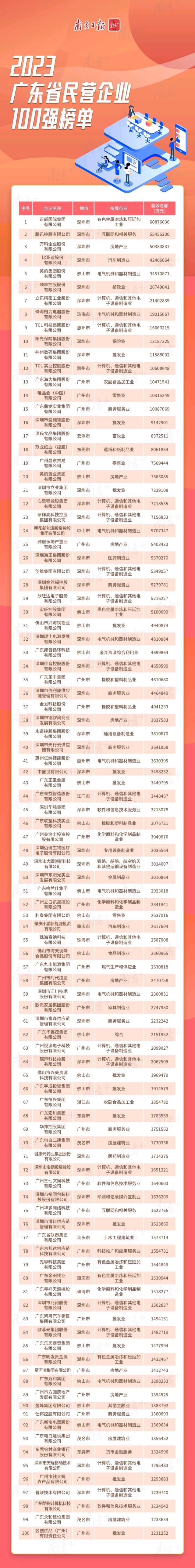 據(jù)悉,“2023廣東省民營企業(yè)100強(qiáng)”入圍門檻為123.13億元,其中2022年?duì)I業(yè)收入超過4000億元的企業(yè)有4家,超1000億元的有15家,超200億元的有64家。地區(qū)分布情況:深圳38家,廣州25家,佛山17家,珠海、惠州、東莞、茂名各3家,肇慶2家,汕頭、中山、江門、湛江、潮州、云浮各1家。