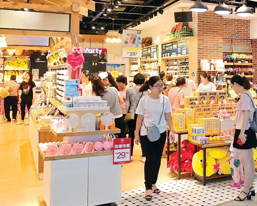 市區(qū)江北某購物中心人頭攢動,購銷兩旺。