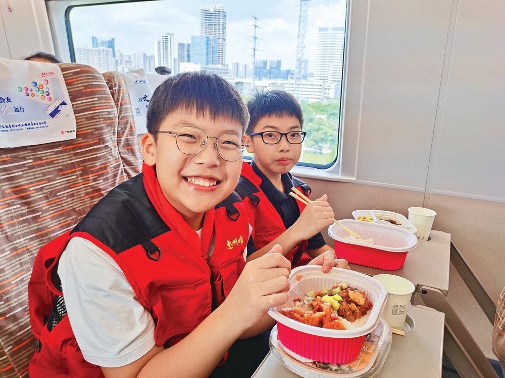 惠州日報(bào)小記者開心享用高鐵午餐。