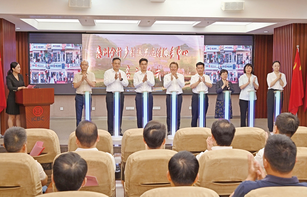 惠州工行鄉(xiāng)村振興遠(yuǎn)維服務(wù)中心與“工銀興農(nóng)通”鄉(xiāng)村振興金融服務(wù)點(diǎn)聯(lián)合啟動(dòng)儀式。