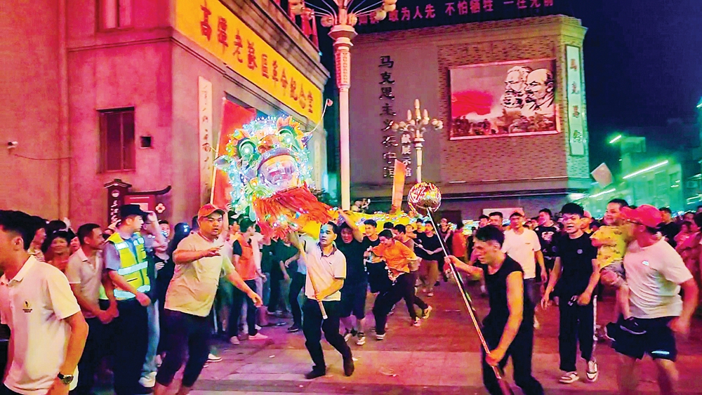 惠東高潭鎮(zhèn)村民手舞“長龍”穿街走巷。 惠州日報記者陳濤 攝