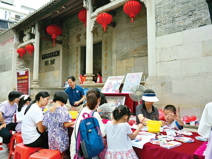 當(dāng)天上午,在東江民俗文物館,一場(chǎng)龍門農(nóng)民畫(huà)技藝展演吸引了不少家長(zhǎng)和孩子熱情參與。龍門農(nóng)民畫(huà)歷史悠久、色彩絢爛、內(nèi)涵豐富,被稱作“嶺南藝術(shù)奇葩”,是惠州一張閃亮的文化名片。“這樣的活動(dòng)很好,能讓孩子感受到傳統(tǒng)文化的魅力和博大精深!眳⑴c活動(dòng)的市民紛紛點(diǎn)贊。