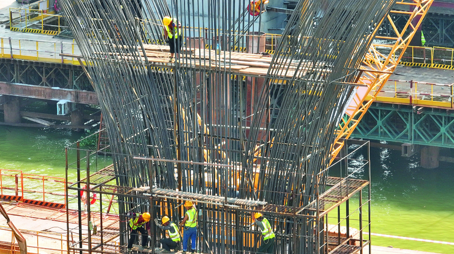 為了鵝城大橋早日通車(chē),他們加班加點(diǎn)搶進(jìn)度;葜萑?qǐng)?bào)記者鐘暢新 攝