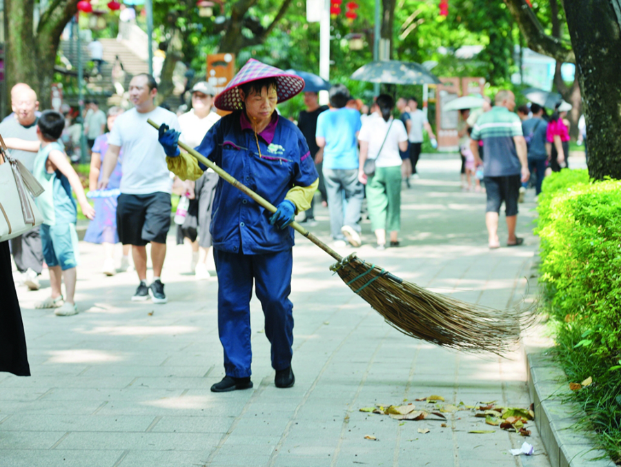 惠州西湖景區(qū)內(nèi)保潔工作人員;葜萑?qǐng)?bào)記者張藝明 攝